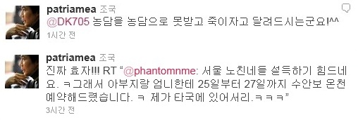 22일 조국 교수는 트위터를 통해 "설득하기 힘든 부모님께 25일부터 27일까지 온천 예약해드렸다"는 네티즌에 "진짜 효자!!"라고 칭찬했다.